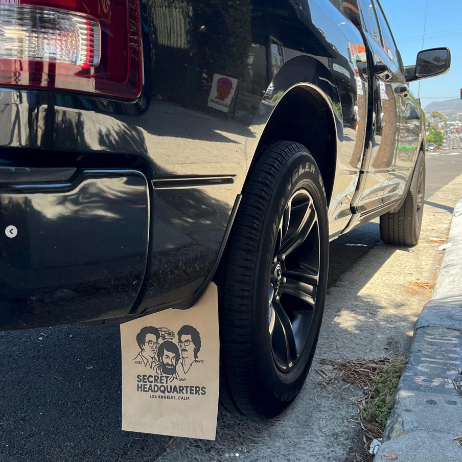 "Hey Sam, we want a merch bag that looks like the Western Truck Exchange mud flaps, but with our faces replacing theirs."