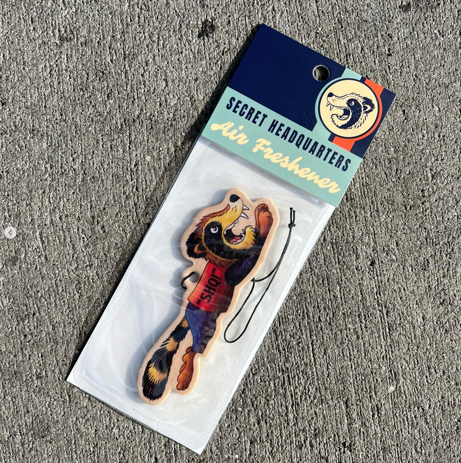 "Hey Sam. We got these Mitch air fresheners designed by Andrew Brandou. Can you whip up some "vintage motorsport" packaging to go with it?